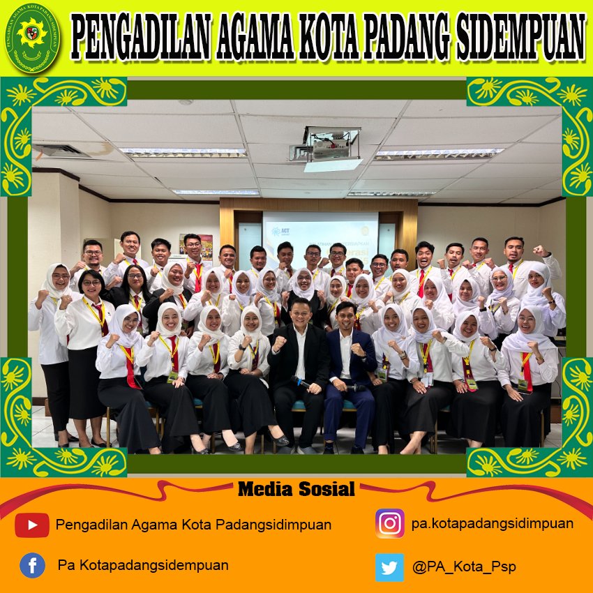 Sejak minggu lalu, salah seorang aparatur Pengadilan Agama Kota Padang Sidempuan - Rina Rahmadini, S.T. mengikuti Pelatihan Kepemimpinan Pengadilan Mempersiapkan Generasi Emas Mahkamah Agung RI 2045 bertempat di Pudiklat Mahkamah Agung RI yang dilaksanakan mulai tanggal 16 hingga 25 November 2022.