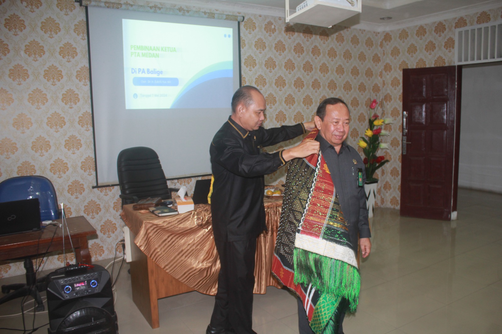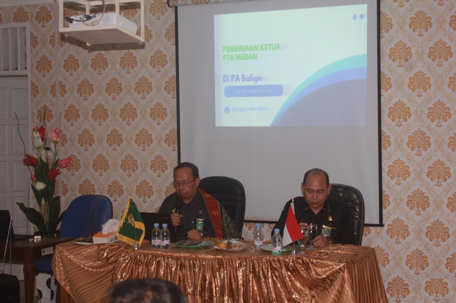 Kunjungan Kerja KPTA Medan ini merupakan pembinaan dan pengawasan pada Pengadilan Agama Balige, KPTA Medan melihat secara langsung kondisi Gedung Pengadilan Agama Balige, menyisir seluruh lingkungan dan ruang kerja Pengadilan Agama Balige, setelah menyisir seluruh ruangan, dan memeriksa beberapa berkas putusan, KPTA Medan langsung menuju ke ruangan Media Center Pengadilan Agama Balige, untuk melakukan pembinaan terhadap seluruh aparatur Pengadilan Agama Balige. Acara dibuka Oleh Protokol Ulfa Adania, AMd.A.B. dilanjutkan pembacaan doa Oleh Kasubbag Kepegawaian PA Balige Ilham Syukri Nasution, A.Md. dilanjutkan dengan Kata sambutan oleh Ketua Pengadilan Agama Balige Sudarman,S.Ag., M.H. Beliau mengatakan " Terimakasih Kepada KPTA Medan yang datang berkunjung Ke Pengadilan Agama Balige, PA Balige di tahun lalu mendapatkan penghargaan dari Ketua MA Terbaik Ketiga dalam kinerja layanan ecourt Kategori 0-1000 Perkara. selanjutnya pemberian kain ulos kepada KPTA Medan Oleh Ketua Pengadilan Agama Balige.