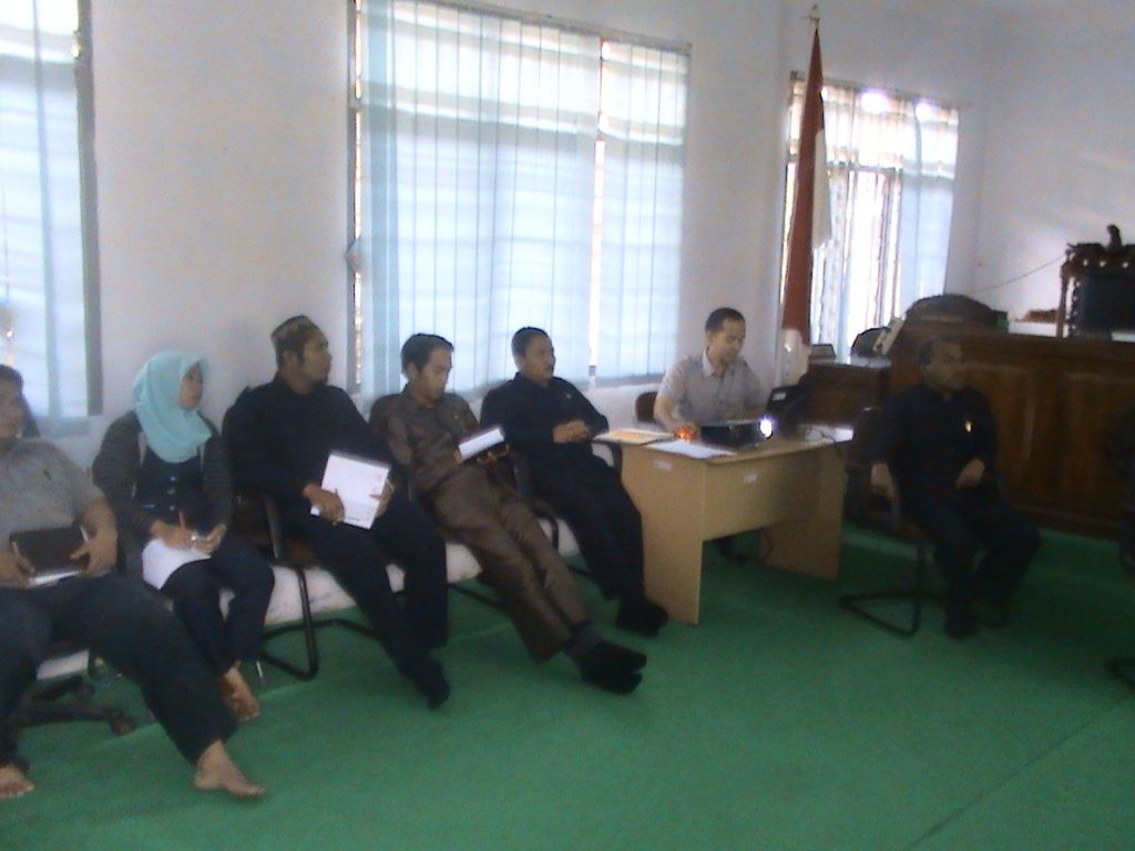 Oleh karena itu dalam rangka pemerataan pengetahuan tentang SIADPA khususnya yang diperoleh oleh kedua peserta dari P.A. Tarutung tersebut di atas, maka Tuesday Meeting pada hari Selasa, tanggal 8 Oktober 2013 Pengadilan Agama Tarutung mengisinya dengan acara sosialisasi Asistensi dan Validasi SIADPA Plus di Ruang Sidang Pengadilan Agama Tarutung. Acara yang dimulai tepat pada pukul 9.00 WIB dengan pembawa acara Bapak M. Iqbal, SHI dihadiri oleh Ketua, Wakil Ketua, para Hakim, Pansek dan pejabat serta pegawai yang lainnya.