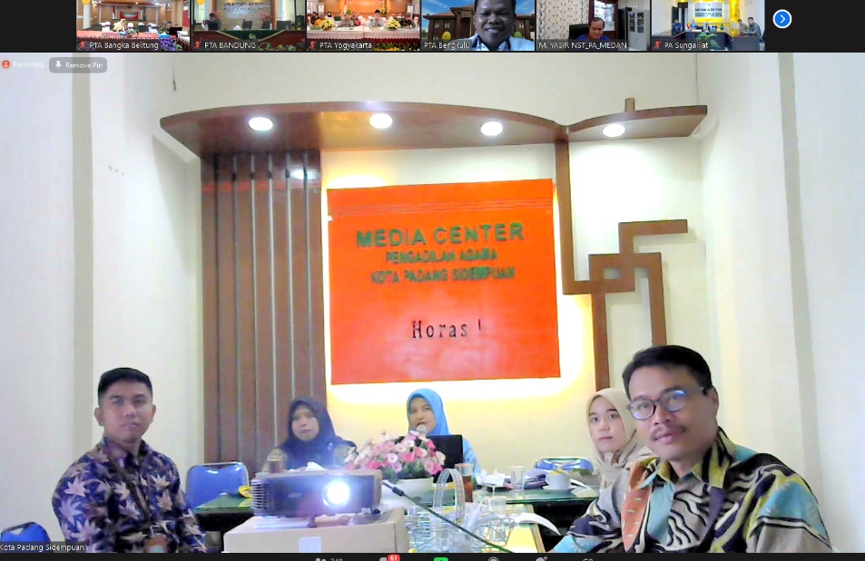 Tim Kepaniteraan PA Kota Padang Sidempuan mengikuti sharing informasi dan bincang/diskusi melalui virtual zoom yang disiasati antar sesama panitera di lingkungan Peradilan Agama. Agenda sharing tersebut diselenggarakan guna menyahuti sebuah lompatan besar Badilag, yang mana mulai Triwulan III seluruh PTA dan PA tidak lagi membuat laporan manual dan seluruh data pelaporan otomatis akan direkam dari aplikasi Kinsatker.