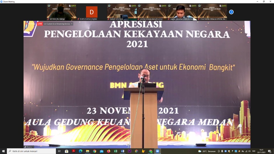 Selasa, 23 November 2021, bertempat di Ruang Kesekretariatan Pengadilan Agama Balige. Operator BMN Pengadilan Agama Balige ( Riskon, S.H.I) mengikuti Kegiatan Apresiasi Pengelolaan Kekayaan Negara yang diselenggarakan oleh Kantir Wilayah DJKN Sumatera Utara secara virtual melalui aplikasi zoom meeting.