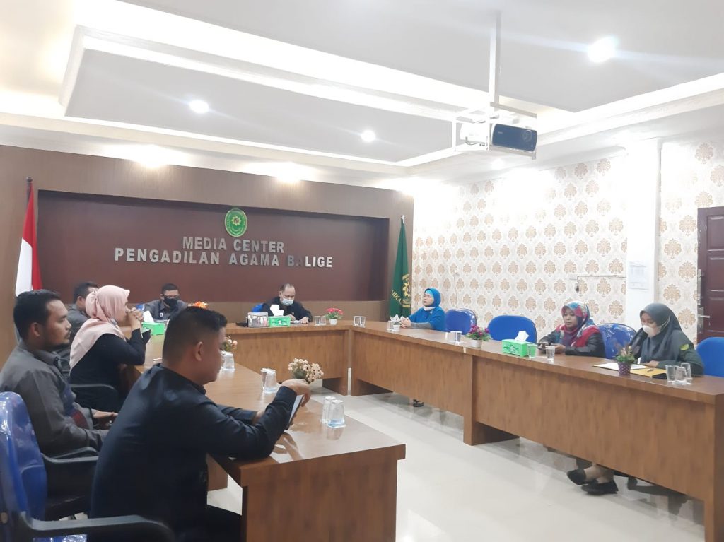 Balige, 24 Nopember 2021, bertempat di Ruang Media Center Pengadilan Agama Balige. Seluruh aparatur Pengadilan Agama Balige yaitu Ketua Pengadilan Agama Balige, beserta Wakil Ketua, Hakim, Panitera, Sekretaris, pejabat struktural/fungsional, seluruh pegawai, CPNS dan PPNPN Pengadilan Agama Balige menyelenggarakan Rapat Evaluasi Pimpinan dan Sporting Unit Pengadilan Agama Balige.