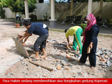 Kekompakan semua Hakim dan Pegawai PA Kisaran dalam melakukan gotong royong membuat suasana semakin akrab dan semangat untuk bekerja meskipun dalam suasana terik matahari yang begitu menyengat. Sebagian bapak-bapak mencangkul dan membersihkan rumput, sedangkan Ibu-ibu merawat bunga dan sebagian lagi menyiapkan minuman. “Alhamdulillah apa yang kita rencanakan sukses semuanya selesai”, begitu ujar Panitera.