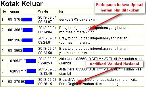 "Apabila belum diupload, atau sudah diupload tetapi masih merah di menu validasi di infoperkara.net, maka aplikasi ini juga akan mengirimkan SMS notifikasi agar operator mengupload ulang sehingga validasi menjadi hijau", jelas tim IT kepada redaksi pakisaran.