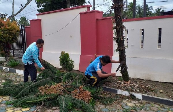 Kegitan bersih-bersih pekarangan kantor diawali dengan menggumpulkan ranting-ranting pohon yang berjatuhan, mencabuti rumput-rumput liar, serta menebang beberapa pohon di halaman depan dan samping pekarangan Pengadilan Agama Kota Padang Sidempuan. Penebangan pohon-pohon ini dilakukan karena beberapa pohon sudah terlalu tinggi sehingga hampir menyentuh kabel-kabel penghubung tiang listrik di pinggir jalan, selain itu juga untuk meminimalisir kerusakan pada dinding pagar kantor dikarenakan akar-akar pohon yang terus menjalar dari dalam tanah.