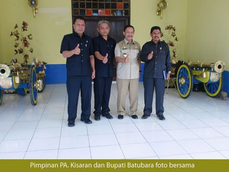Rombongan PA Kisaran disambut langsung oleh bupati Batubara H. OK Arya. Acara silaturahmi tersebut membahas tentang pelaksanaan sidang keliling di Kabupaten Batubara dan pelaksanaan sidang satu atap dalam rangka memenuhi hak-hak identitas serta pelaksanaan penyuluhan hukum.