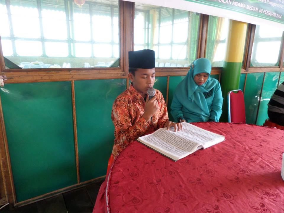 Kekhidmatan acara Maulid Nabi Muhammad SAW 1435 mulai terasa ketika qori Juara Tingkat Kabupaten Deli Serdang, Affan Gafar Nasution, yang juga putera dari salah seorang pegawai Pengadilan Agama Medan Hj. Jumini, melantunkan ayat Suci Alqur’an.