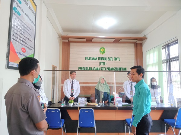 Selasa (5/7/22) sebelum memulai agenda persidangan, Hakim Pengadilan Agama Kota Padang Sidempuan, bapak Hasybi Hassadiqi, S.H.I mengajak seluruh petugas PTSP (Pelayanan Terpadu Satu Pintu) Pengadilan Agama Kota Padang Sidempuan, petugas layanan e-Court dan petugas keamanan (security) berkumpul di ruang PTSP untuk menggelar briefing.