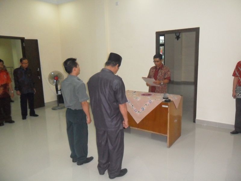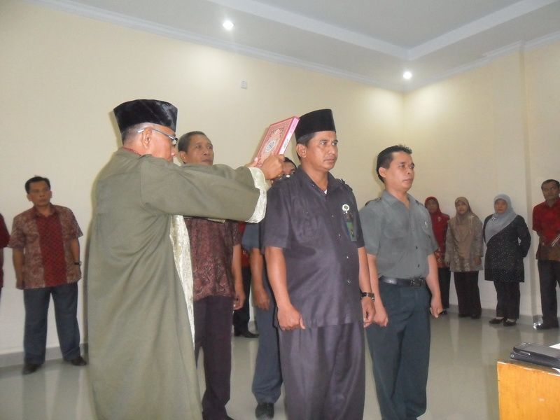 SAM 0033Dengan Hj. Latifah, S.H. sebagai protokol, acara dimulai tepat pukul 9.30 WIB. Gelak tawa dan obrolan pelepas rindu dari para pejabat yang bertemu teman lamanya seketika hilang dan berubah menjadi keheningan yang khidmad saat Ketua PA Lubuk Pakam Klas I-B, Drs. Nur Mujib, M.H. memasuki ruangan rapat yang menjadi tempat acara pelantikan. Setelah bersama-sama membaca lafadz Basmallah, Khairuna Nasution, S.H. membacakan Surat Keputusan. Pengambilan sumpah jabatan adalah agenda acara berikutnya. Dengan kitab suci Al-Qur’an yang dijunjung oleh Mahmun, S.Ag.; Drs. Muhammad Sofyan dan Muhammad Rivai, S.H. mengucapkan sumpah mereka dengan bersungguh-sungguh. Sebagai saksi dalam pengambilan sumpah jabatan tersebut adalah Wakil Panitera PA Lubuk Pakam Klas I-B, Asran, S.Ag dan Wakil Sekretaris PA Lubuk Pakam Klas I-B, Nasib, S.H. Selanjutnya Ketua PA Lubuk Pakam Klas I-B, Drs. Nur Mujib, M.H. secara resmi melantik kedua pejabat tersebut.