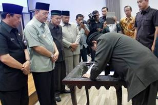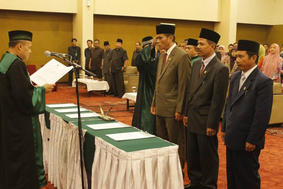 Selesai pengucapan sumpah dan pelantikan, para pejabat yang baru saja dilantik di dampingi para istri dengan wajah sumringah dan senyum mengembang menerima ucapan selamat dari para undangan.