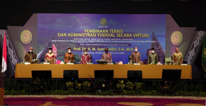 Usai meresmikan bangunan Rumah Tahfiz yang dikelola Ketua Kamar Agama Mahkamah Agung di Deli Serdang Sumatera Utara pada pagi hari, siang harinya YM Ketua Mahkamah Agung, bapak Prof Dr. H. M. Syarifuddin, S.H., M.H berserta jajaran petinggi Mahkamah Agung hadir di Hotel JW Marriot Medan untuk menggelar agenda Pembinaan Teknis dan Administrasi Yudisial bagi jajaran 4 (empat) Lingkungan Peradilan di Indonesia.
