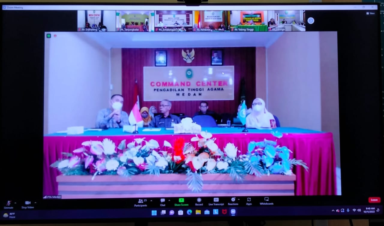 Sidikalang- Selasa tanggal 11 Oktober 2022 sesuai dengan surat Ketua Pengadilan Tinggi Agama Medan nomor W2-A/2375/PP.01.3/X/2022 perihal Pemanggilan Peserta sosialisasi PNBP Teknis Sewilayah Pengadilan Tinggi Agama Medan tahun 2022 maka aparatur Pengadilan Agama Sidikalang yang terdiri dari Panitera, Basyirun Maha,S.H, Panitera Muda Hukum, Yusmidawarni Daulay,S.H, Kasir, Aprilia Sari Dumenggan Nasution,S.H dan operator , Nurhajijah Caniago,S.H.I turut menghadiri undangan tersebut yang dilakukan secara daring melalui Media Center Pengadilan Agama Sidikalang. Kegiatan ini dijadwalkan akan berlangsung selama tiga hari mulai selasa tanggal 11 Oktober 2022 dan akan berakhir pada hari Kamis tanggal 13 Oktober 2022. Acara bimbingan teknis ini diikuti oleh 22 satker sewilayah hukum Pengadilan Tinggi Agama Medan.
